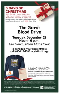 Blood Drive North Clubhouse Dec 22nd Posted on December 16, 2020 by Jenny Street Please see below for more info regarding the next Blood Drive at the north clubhouse.